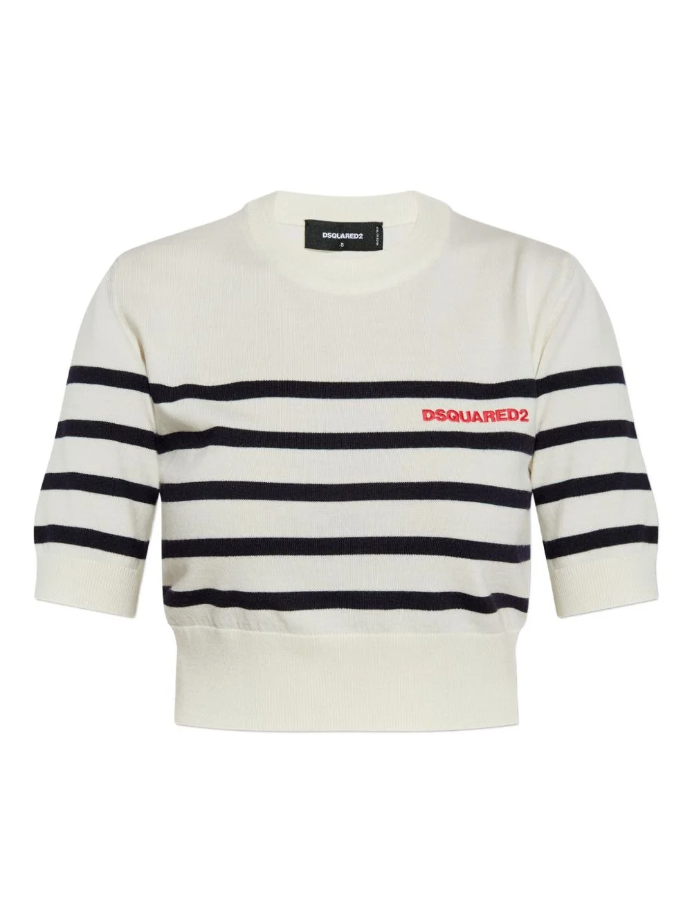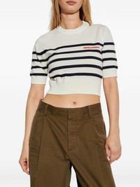 embroidered-logo T-shirt Highlights - White - Blue stripes - Stripe pattern - Short sleeves - Crew neck - Embroidered logo - Cropped hem Made in Italy Composition Wool 100% Washing instructions Read Manufacturer Guidelines