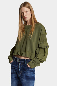 - MADE FROM BRUSHED COTTON FLEECE - WIDE NECK - DROPPED SHOULDERS - RIBBED TRIMS - UTILITY POCKETS - BUTTONED SHOULDER TABS - FRONT DRAWSTRING PRIMARY FABRIC: 100% COTTON; SECONDARY FABRIC: 98% COTTON, 2% ELASTANE-SPANDEX; SECONDARY FABRIC: 97% COTTON, 3% ELASTANE-SPANDEX Casual comfort meets utility attitude. In a statement mash-up of styles, this wide-neck sweatshirt is updated with maxi flap pockets and buttoned shoulder tabs. Finished with a front drawstring detail.