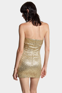 - MADE FROM A SILK-WOOL BLEND - MINI TUBE STYLE - OVERSIZED GOLD BOW DETAIL - BACK HIDDEN ZIP CLOSURE PRIMARY FABRIC: 56% SILK, 27% WOOL, 17% POLYAMIDE-NYLON; SECONDARY FABRIC: 88% POLYAMIDE-NYLON, 12% ELASTANE-SPANDEX Make an entrance in this gold jacquard mini dress: a must-have for the party season. Shaped with vertical panelling for a sculpted fit, it flaunts a romantic bow detail around the bust. Team with stiletto heels for maximum glam.