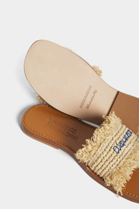 - PRODUCT ID : FSW0074289083685089 - MADE FROM RAFFIA - SLIP-ON DESIGN - FRAYED EDGES - LEATHER FOOTBED - LEATHER SOLE - EMBROIDERED DSQUARED2 LETTERING UPPER: 100% RAFFIA. LINING: 100% LEATHER. SOLE: 100% LEATHER Bring authentic summer charm to endless ensembles with these laid-back slide sandals. Made from woven raffia, they're edged with frayed trims for maximum drama. Complete with delicately embroidered Dsquared2 lettering.