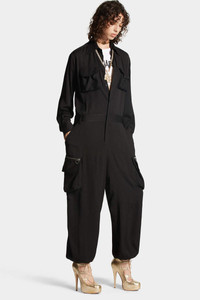 ● PRODUCT ID: S75FP0161S76512900 ● SILK-BLEND JUMPSUIT ● PLEATED POCKETS WITH FLAP ● SHIRT-STYLE COLLAR ● BUTTON FASTENING ● BELT TO TIE AT THE WAIST ● CHAIN WITH LOGO SEWN INTO THE YOKE ● YOKE WITH BOX PLEAT ● LEG CUFFS WITH STRAP ● OVERSIZED FIT ● MADE IN ITALY ● FABRIC: 57% ACETATE, 43% SILK This one-piece jumpsuit designed for the evening or for special occasions is the stroke of genius we needed. The slouchy effect is guaranteed by the silk blend fabric that slides softly along the body. The gusseted pockets create volume and greater movement, while the belt at the waist adds femininity. The point of light can be determined by a jewelled clutch bag and metallic sandals.