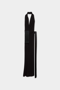 - PRODUCT ID : S72CV0681S24588900 - MADE FROM CREPE VISCOSE JERSEY - ASYMMETRIC DRAPED DESIGN - PLUNGING V-NECK - FRINGE DETAILING PRIMARY FABRIC: 100% VISCOSE-RAYON Sometimes less is more, and this dress is proof. Caressing the body in draped viscose jersey with dramatic fringe detailing, this barely-there maxi is a party season essential reserved exclusively for special occasions only.