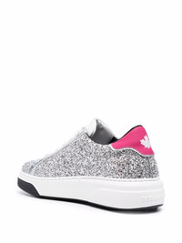 glittered low-top sneakers Dsquared2’s bold visual identity extends to their footwear offering, as captured by these sneakers and their distinctive silver-hued design. Covered in glitter, the pair is finished with a contrasting heel counter printed with a leaf, celebrating the label’s Canadian roots. Made in Italy Composition Outer: Polyester 75%, Calf Leather 15%, Goat Skin 10% Lining: Leather 100% Sole: Rubber 100% SIZE & FIT Measurement HEEL 1.57 in(4 cm) PLATFORM 1.18 in(3 cm)