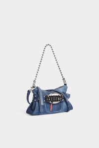 - PRODUCT ID: CLW0031101023253110 - STONE WASHED DENIM SHOULDER CLUTCH - ZIP FASTENER - BELT-LIKE STRAP WITH ENAMELLED METAL LOGO BUCKLE - ELEMENTS WITH HOLLOW OUT RIVETS - METAL CHAIN STRAP - DENIM ADJUSTABLE AND REMOVABLE STRAP - SIZE: HIGH CM 17, LONG CM 23, WIDE CM 7 - INSIDE POCKET. INNER LINING - MADE IN ITALY STRUCT: 98% COTTON, 2% ELASTANE/ LINING: 100% COTTON/ ACC COMP: 90% ZAMA,5% IRON,5% BRASS/ OTHER ACC 1: 100% BRASS The Dsquared2 Belt Clutch is a bag that encapsulates the brand's style: originality. The reference to studded belts reveals the ironic spirit that accompanies an accessory that has become iconic. To be carried by hand or over the shoulder, the bag goes with different looks, but always with a strong personality.