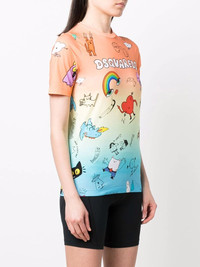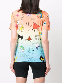 graphic-print gradient T-shirt orange/blue cotton all-over graphic print gradient effect crew neck short sleeves straight hem Made in Italy Composition Cotton 100% SIZE & FIT Model measurements Height 5 ft 10 in(1.78 m) Bust/Chest 31.49 in(80 cm) Hips 36.22 in(92 cm) Waist 25.59 in(65 cm) Washing instructions Machine Wash