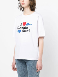 graphic-print short-sleeve T-shirt white graphic print to the front logo print to the rear crew neck short sleeves straight hem Made in Italy Composition Cotton 100% SIZE & FIT Model measurements Height 5 ft 9 in(1.76 m) Bust/Chest 29.92 in(76 cm) Hips 35.82 in(91 cm) Waist 25.98 in(66 cm) FittingInformation This piece fits true to size. We recommend you get your regular size Cut for a loose fit Made with a mid-weight fabric Washing instructions Machine Wash