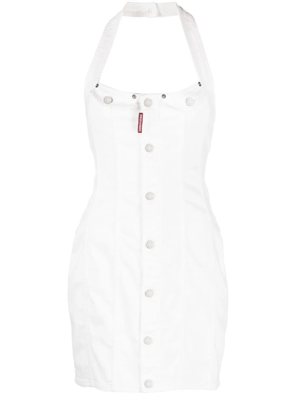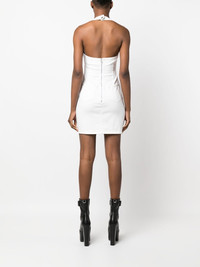 halterneck denim dress white stretch-cotton logo tag halterneck front button fastening sleeveless rear zip fastening bodycon design above-knee length two rear patch pockets Made in Italy Composition Cotton 92%, Polyester 5%, Elastane 3% SIZE & FIT Model measurements Height 5 ft 11 in(1.8 m) Bust/Chest 31.49 in(80 cm) Hips 36.61 in(93 cm) Waist 24.4 in(62 cm) FittingInformation This piece fits true to size. We recommend you get your regular size Cut for a slim fit Made with a mid-weight fabric Washing instructions Machine Wash