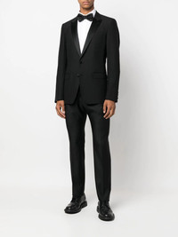 slim-fit trousers In a tailored design, these slim-fit trousers by Dsquared2 are crafted in a blend of virgin wool and silk, whilst a sharply pressed crease adds a sophisticated touch. Highlights - Black - Virgin wool-silk blend - Pressed crease - Belt loops - Two side inset pockets - Two rear button-fastening jetted pockets - Concealed front fastening Made in Italy Composition Outer: Virgin Wool 65%, Silk 35% Lining: Polyester 100% SIZE & FIT Model measurements Height 6 ft 2 in(1.87 m) Bust/Chest 38.18 in(97 cm) Hips 36.61 in(93 cm) Waist 29.13 in(74 cm) FittingInformation This piece fits true to size. We recommend you get your regular size Cut for a slim fit Made with a mid-weight non-stretch fabric Washing instructions Dry Clean Only