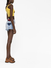 high-waisted denim shorts Dsquared2's denim shorts are faded and trimmed with frayed edges for a worn-in look. The 'Honey' logo patch and spray paint-effect heart add romantic details. Made in Italy Composition Lining: Polyester 65%, Cotton 35% Outer: Polyester 100%, Cotton 98%, Spandex/Elastane 2% SIZE & FIT Model measurements Height 5 ft 10 in(1.79 m) Bust/Chest 31.1 in(79 cm) Hips 35.03 in(89 cm) Waist 24.01 in(61 cm) FittingInformation This piece fits true to size. We recommend you get your regular size Cut for a slim fit Made with a mid-weight stretch fabric Washing instructions Machine Wash