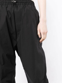 high-waisted tapered trousers jet black cotton blend drawstring waist tapered leg elasticated ankles Made in Italy Composition Cotton 97%, Elastane 3% SIZE & FIT Model measurements Height 5 ft 10 in(1.79 m) Bust/Chest 31.49 in(80 cm) Hips 35.03 in(89 cm) Waist 24.01 in(61 cm) FittingInformation This piece fits true to size. We recommend you get your regular size Designed to be loose over the leg with a fitted waist and hem Made with a mid-weight stretch fabric Washing instructions Machine Wash