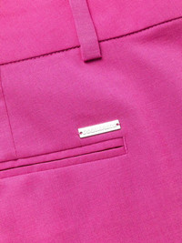 high-waisted wide-leg trousers DSquared2 adds a vibrant spin to classically tailored high-waisted trousers with this eye-catching hot pink hued pair. Cut in a wide-leg, they're secured with a concealed front fastening. Made in Italy Composition Outer: Polyester 54%, Virgin Wool 44%, Spandex/Elastane 2% Lining: Cupro 100% SIZE & FIT Model measurements Height 5 ft 10 in(1.78 m) Bust/Chest 30.31 in(77 cm) Hips 36.61 in(93 cm) Waist 24.8 in(63 cm) FittingInformation This piece fits large – you might want to get one size down Designed to be fitted at the waist and hips, loose over the leg Made with a mid-weight stretch fabric Washing instructions Dry Clean Only