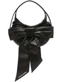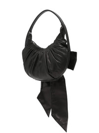 Hobo mini bow handbag black leather oversize bow detail ruched detailing adjustable top handle top zip fastening internal slip pocket Made in Italy Composition Leather 100% SIZE & FIT Model measurements Height 5 ft 9 in(1.76 m) Bust/Chest 29.13 in(74 cm) Hips 33.07 in(84 cm) Waist 22.83 in(58 cm) Measurement DEPTH 3.14 in(8 cm) HANDLE 4.72 in(12 cm) HEIGHT 5.51 in(14 cm) WIDTH 9.84 in(25 cm)