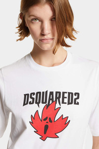 - PRODUCT ID: S75GD0416D20020100 - COTTON JERSEY T-SHIRT - PATTERN AND LETTERING PRINTS ON THE FRONT - RIB KNIT NECKLINE - TWO NEEDLE STITCHING - FIT: BOXY - MADE IN ITALY FABRIC 1: 100% COTTON FABRIC 2: 100% COTTON The maple leaf is the iconic symbol of Canada that Dean and Dan have reinterpreted to celebrate their origins. Here it is printed on a loose-fitting cotton jersey T-shirt.
