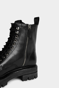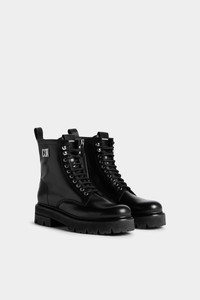 ● PRODUCT ID: ABW0190015000012124 ● LEATHER COMBAT BOOTS ● STUD WITH LETTERING ON THE LEG ● LACES ● SIDE ZIP ● PULLER SEWN ON THE BACK ● POLYURETHANE LUG SOLE ● LEATHER LINED ● MADE IN ITALY ● UPPER: 100% CALF LEATHER ● LINING: 100% CALF LEATHER The combat is the boot that has now entered everyone's imagination. Created as footwear for military purposes, it has become a cultural phenomenon all over the world. Perfect with distressed jeans, but also with miniskirts and light, airy dresses. In short, a master key to defining your own style.