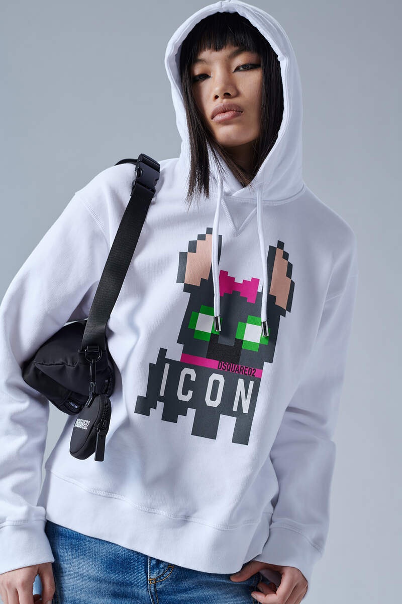 - PRODUCT ID: S80GU0095S25516100 - COTTON SWEATSHIRT - REGULAR FIT - DRAWSTRING HOOD - PIXELATED GRAPHIC PRINT WITH "DSQUARED2 ICON" LETTERING - MADE IN ITALY PRIMARY FABRIC: 100% COTTON. SECONDARY FABRIC: 99% COTTON, 1% ELASTANE-SPANDEX