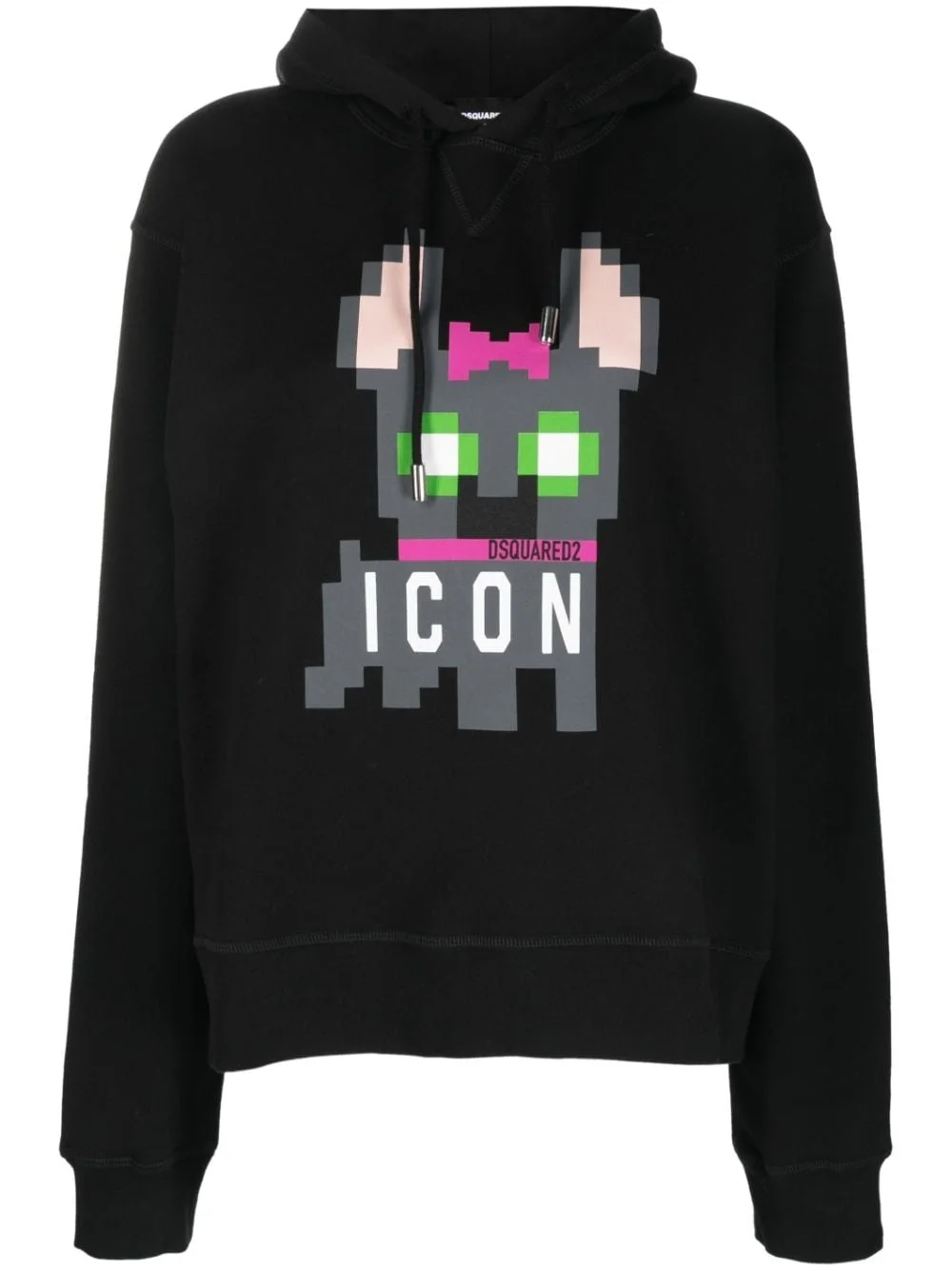 Icon Hilde cotton hoodie Highlights - Black - Cotton - Pixelated graphic print to the front - Logo print to the rear - Tonal stitching - Classic hood - Drop shoulder - Long sleeves - Straight hem Made in Italy Composition Cotton 100% SIZE & FIT Model measurements Height 5 ft 10 in(1.78 m) Bust/Chest 31.49 in(80 cm) Hips 37 in(94 cm) Waist 23.62 in(60 cm) FittingInformation Designed for a relaxed fit, this piece allows for comfort and movement when worn Made from a midweight non-stretch fabric, this piece offers minimal elasticity when worn This piece fits true to size – take your usual size Washing instructions Machine Wash