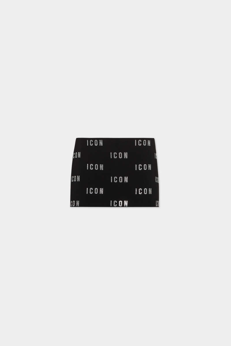 - MADE FROM CREPE CADY - RHINESTONE "ICON" LETTERING - BACK ZIP CLOSURE - ICON NEW GENERATION COLLECTION PRIMARY FABRIC: 100% POLYESTER. COATING: 100% POLYURETHANE. LINING: 100% POLYESTER. Show off your pins in this crepe cady mini skirt, encrusted with all-over rhinestone ICON lettering in a glam celebration of the Icon New Generation edit. Just add strappy heeled sandals for a stand-out party look.