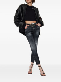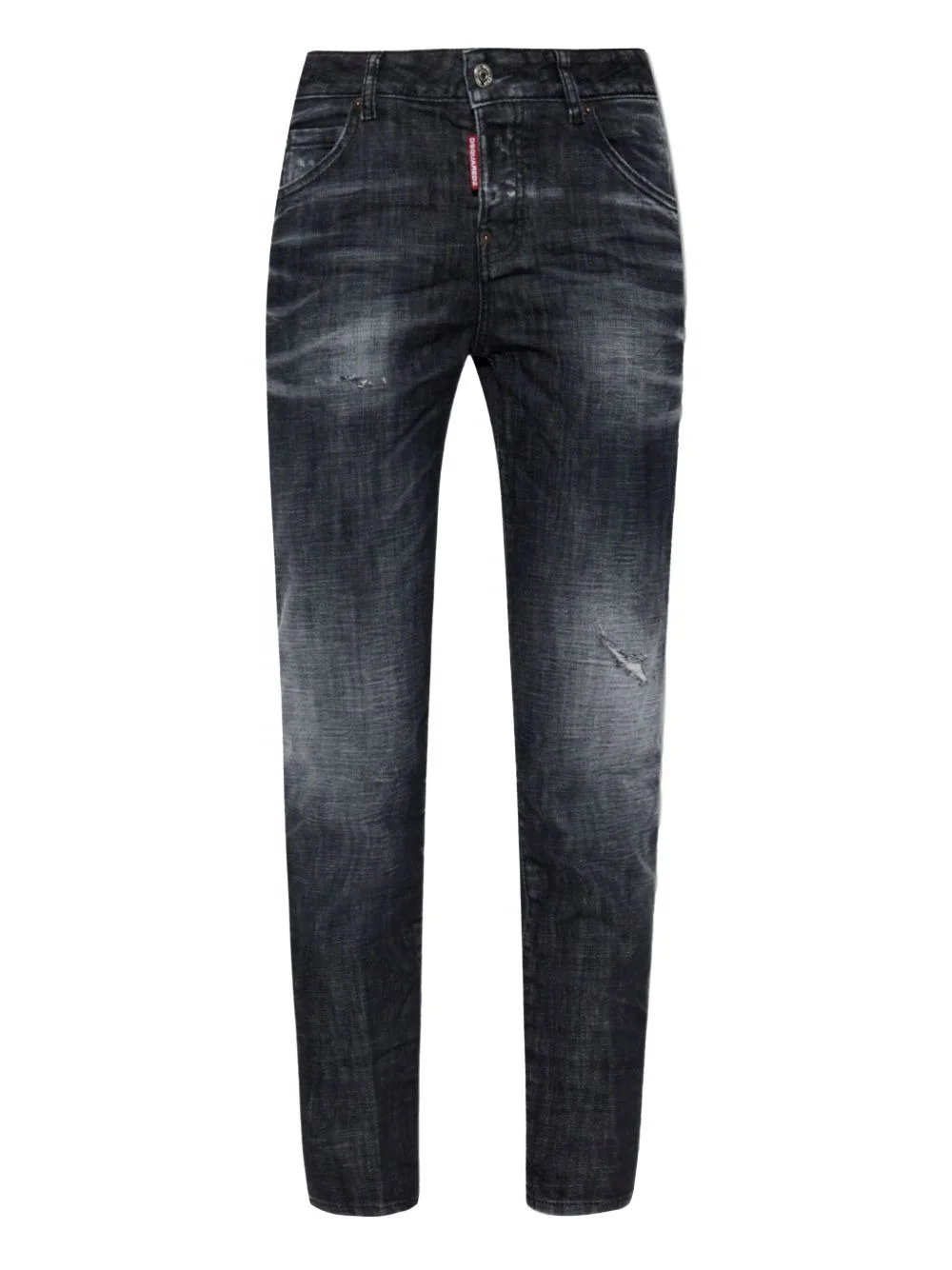 ripped-detail jeans Highlights - Black - Concealed fly and button fastening - Classic five pockets - Belt loops - Logo patch to the rear Made in Italy Composition Cotton 98%, Elastane 2%