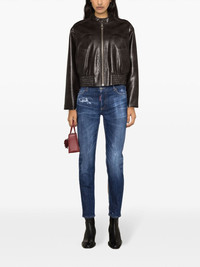 Jennifer low-rise skinny jeans Highlights - Indigo blue - Cotton blend - Denim - Distressed finish - Faded effect - Whiskering effect at the thighs - Ripped detailing - Mini logo tag - Logo patch to the rear - Contrast stitching - Skinny cut - Low-rise - Button fly fastening - Belt loops - Classic five pockets - Straight hem Made in Italy Composition Outer: Calf Leather 100%, Cotton 93%, Polyester 4%, Elastane 3% Lining: Polyester 65%, Cotton 35% SIZE & FIT Model measurements Height 5 ft 10 in(1.78 m) Bust/Chest 31.49 in(80 cm) Hips 35.03 in(89 cm) Waist 23.62 in(60 cm) FittingInformation Designed for a skinny fit, these jeans offer a close fit throughout Constructed from stretch denim, this piece offers a stretch fit with durability This piece fits true to size – take your usual size Washing instructions Machine Wash