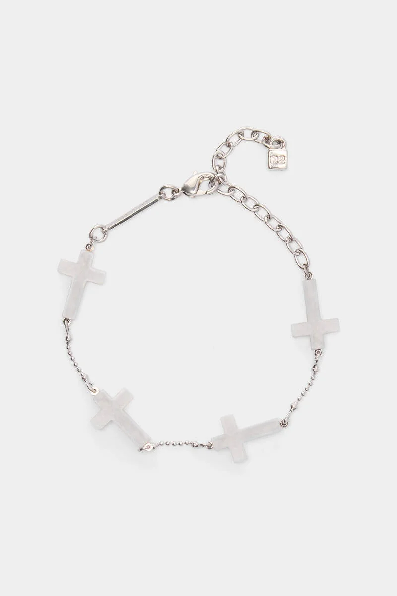 - PRODUCT ID: ARW015834304675M803 - BRASS BRACELET - BRANDED CROSS EMBELLISHMENTS - "D2" CHARM - LOBSTER CLASP - MADE IN ITALY 65% BRASS, 30% RESIN, 30% TIN ALLOY Looking to elevate your outfit with a new bracelet? The search is over: immaculate white crosses endow this silver-tone chain bracelet with a (literally) divine vibe. And, as if that isn't perfect enough, a lobster clasp and chain closure allow you fit it to your wrist however you like.