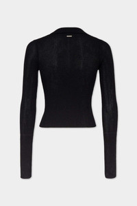 - MADE FROM MICRO-RIB STRETCH COTTON - POLO COLLAR - TRIPLE-HOOK CLOSURE - METAL LOGO PLAQUE PRIMARY FABRIC: 84% COTTON, 16% POLYAMIDE-NYLON A feminine take on a timeless wardrobe staple. This knitted polo shirt is designed with an open front, fastening with three metal hooks. Crafted from micro-rib stretch cotton for a super-sleek fitted look.