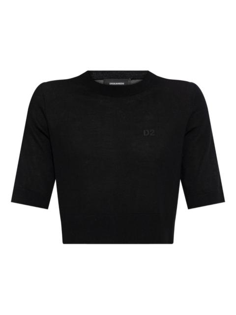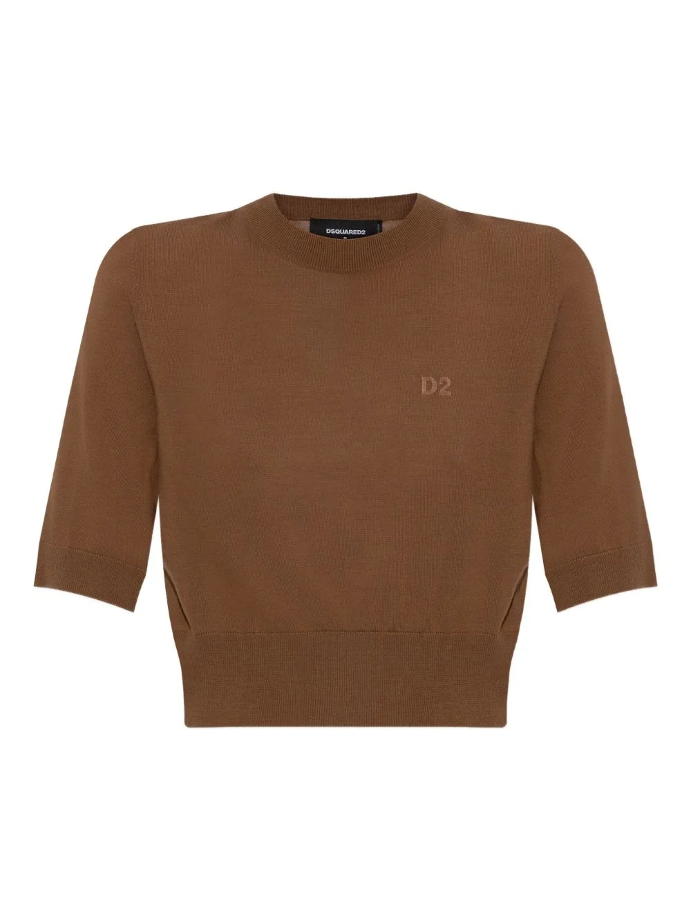 knitted T-shirt Highlights - Brown - Short sleeves - Ribbed crew neck - Side slit details - Embroidered logo Imported Composition Virgin Wool 100% Washing instructions Read Manufacturer Guidelines