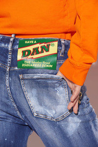 - PRODUCT ID: S75LB0646S30789470 - STRETCH COTTON DENIM JEANS - BOOTCUT FIT - USED WASH WITH DESTROYED DETAILING AND COLOURED STAINS - FIVE-POCKET STYLE - CONCEALED BUTTON FLY - LOGO TAG ON THE FLY - REAR LOOP - REAR "HAVE A DAN” PATCH - DIMENSIONS: CROTCH 26.5 CM, LEG OPENING 25 CM, LENGTH 106 CM - MADE IN ITALY MAIN FABRIC: 92% COTTON, 6% ELASTERELL, 2% ELASTANE-SPANDEX. POCKET LINING: 65% POLYESTER, 35% COTTON. DETAIL: 100% LEATHER THE MODEL IS 5'10' TALL AND WEARS A SIZE 2