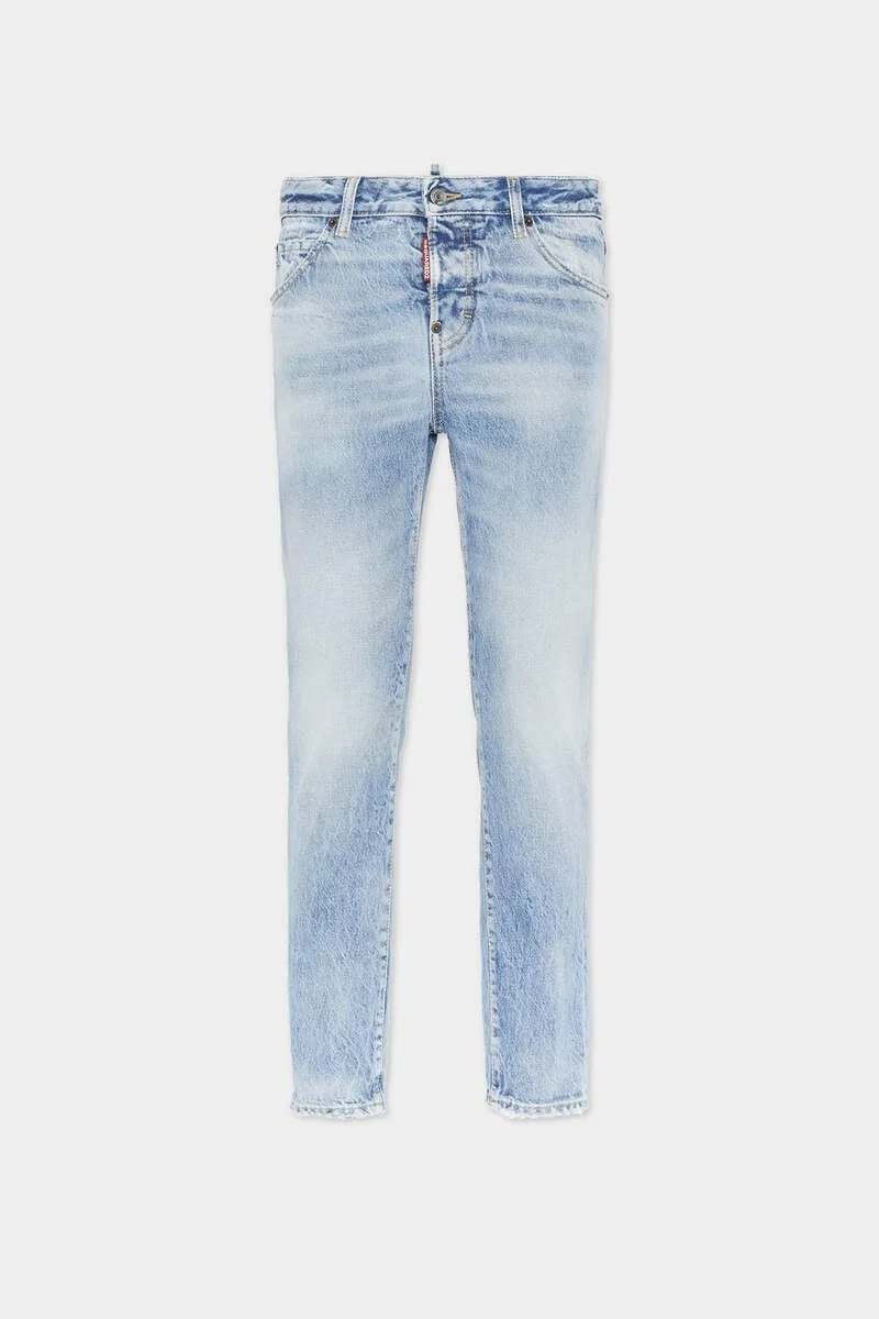 - PRODUCT ID : S75LB1083S30839470 - MADE FROM COTTON DENIM - LIGHT BLUE WASH - SLIM FIT - LOW RISE - FIVE-POCKET STYLE - DISTRESSED FINISH - WHISKERING EFFECTS - RED DSQUARED2 LABEL - DSQUARED2 PATCH