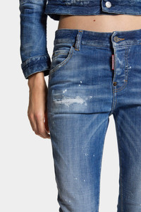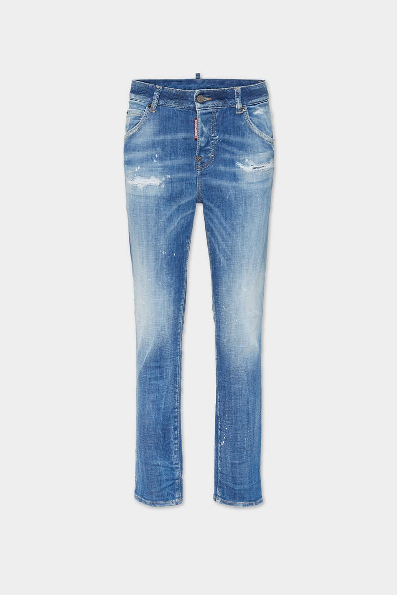 - MADE FROM STRETCH COTTON DENIM - LIGHT BLUE WASH - SLIM FIT - LOW RISE - FIVE-POCKET STYLE - DISTRESSED FINISH - WHISKERING EFFECTS - RED DSQUARED2 LABEL - DSQUARED2 PATCH PRIMARY FABRIC: 93% COTTON, 4% POLYESTER, 3% ELASTANE-SPANDEX; POCKET LINING: 65% POLYESTER, 35% COTTON Get the cool girl look in these light-wash slim-fit jeans, styled with whiskering effects and subtle distressing for effortless throw-on-and-go attitude. Pair with sneakers in the day or strappy heels for an easy evening outfit.