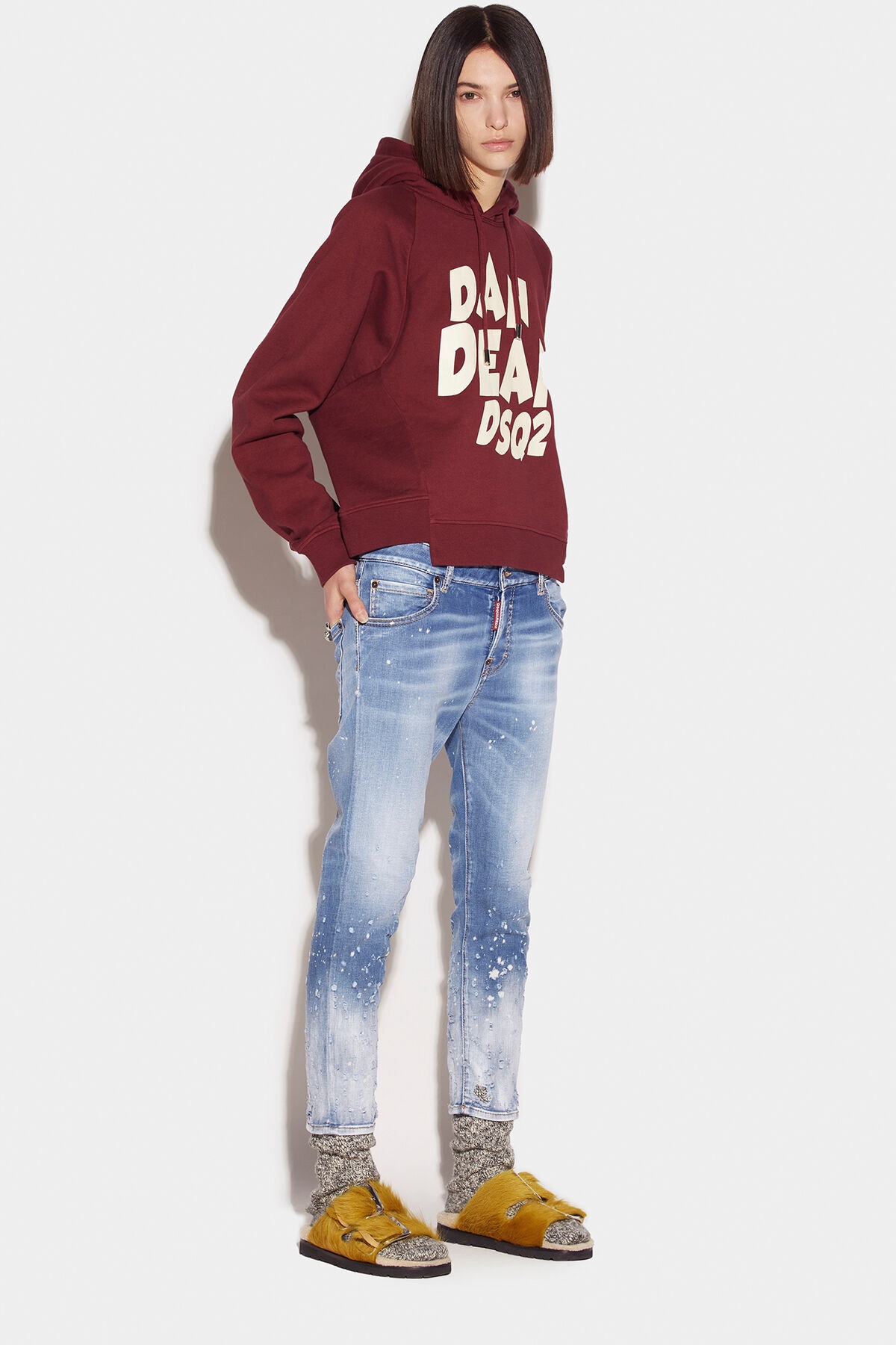 - PRODUCT ID: S75LB0667S30789470 - STRETCH COTTON DENIM JEANS - CROPPED FIT - USED WASH WITH DESTROYED DETAILING - FIVE-POCKET STYLE - CONCEALED FLY AND BUTTON CLOSURE - LOGO TAG ON THE FLY - REAR LOOP - REAR "DSQUARED2 JEANS MILANO" PATCH - MISURE: CROTCH 20 CM, LEG OPENING 16.5 CM, LENGTH 81.5 CM - MADE IN ITALY PRIMARY FABRIC: 92% COTTON, 6% ELASTERELL, 2% ELASTANE-SPANDEX. POCKET LINING: 65% POLYESTER, 35% COTTON. DETAIL: 100% LEATHER THE MODEL IS 5'10' TALL AND WEARS A SIZE 2 STAY BANG ON THE Y2K TREND WITH THIS DSQUARED2 DENIM. THE LIGHT OCEAN SPRAY WASH COOL GIRL CROPPED JEANS EXUDE A REAL NOUGHTIES VIBE THANKS TO THEIR LENGTH. PLUS, THE “DSQUARED2 JEANS MILANO ITALY” LABEL ON THE BACK ADDS SUBTLE ELEGANCE. PAIR WITH A CHUNKY-KNIT JUMPER FOR A COSY YET STYLISH LOOK.