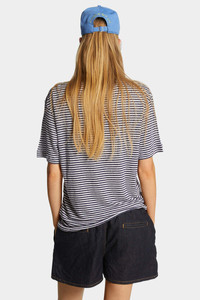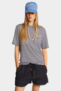 - PRODUCT ID : S73GC0296S23601001F - MADE FROM LINEN JERSEY - MICRO-STRIPED DESIGN - RELAXED FIT - CREW NECK - SHORT SLEEVES - EMBROIDERED "SUMMER LOVERS" LETTERING 100% LINEN Breezy elegance is on the cards with this sailor-stripe tee, cut from lightweight linen jersey. Styled with a loose fit for that effortless throw-on-and-go look, it's embroidered with "DSQUARED2 SUMMER LOVERS XOXO" lettering on the chest.