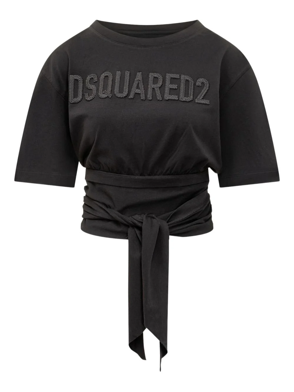 logo-detail tie fastening T-shirt Highlights - Black - Logo detail - Tie detail - Short sleeves - Round neck Imported Composition Cotton 100% Washing instructions Read Manufacturer Guidelines