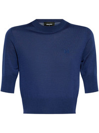 logo-embroidered T-shirt Highlights - Navy blue - Embroidered logo at the chest - Ribbed trim - Cropped Imported Composition Virgin Wool 100%