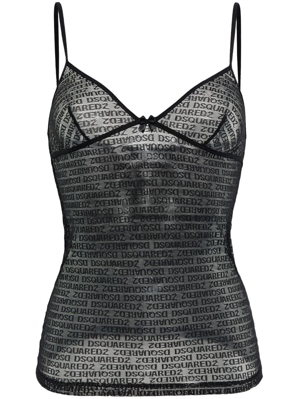 logo-jacquard mesh top Highlights - Black - Mesh design - Logo-jacquard pattern - V-neck - Bow detail - Rear hook and eye fastening - Spaghetti straps - Straight hem Made in Italy Composition Polyamide 93%, Elastane 7% Washing instructions Read Manufacturer Guidelines