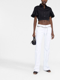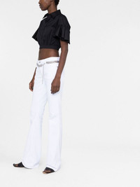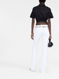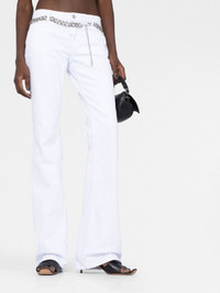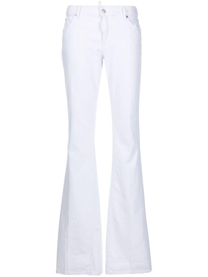 logo-patch flared jeans logo-patch flared jeans from DSQUARED2 featuring white, stretch-cotton, logo patch to the rear, flared design, bootcut, mid-rise, classic five pockets, concealed fly and button fastening and belt loops. Made in Italy Composition Outer: Cotton 98%, Elastane 2% Lining: Cotton 100% SIZE & FIT Model measurements Height 5 ft 11 in(1.81 m) Bust/Chest 33.1 in(84 cm) Hips 35.8 in(91 cm) Waist 23.6 in(60 cm) FittingInformation This piece fits true to size. We recommend you get your regular size Designed to be fitted at the waist and through the thigh, loose from the knee Made with a mid-weight stretch fabric