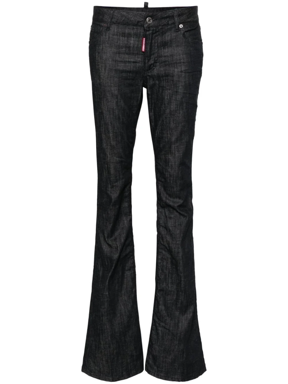 mid-rise flared jeans Highlights - Black - Stretch-cotton - Denim - Crinkled finish - Logo patch to the rear - Mini logo tag - Flared - Mid-rise - Concealed fly and button fastening - Belt loops - Classic five pockets - Straight hem Made in Italy Composition Outer: Cotton 98%, Elastane 2% Lining: Polyester 65%, Cotton 35% SIZE & FIT Model measurements Height 5 ft 9 in(1.75 m) Bust/Chest 34.64 in(88 cm) Hips 36.61 in(93 cm) Waist 26.37 in(67 cm) FittingInformation Designed with a flared hem, these jeans allow for a close fit at the waist with a slim fit over the leg and widening towards the hem Constructed from stretch denim, this piece offers a stretch fit with durability This piece fits true to size – take your usual size
