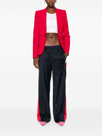 logo-plaque single-breasted blazer Highlights - Red - Silver-tone logo plaque - Peak lapels - Front button fastening - Shoulder pads - Long sleeves - Buttoned cuffs - Chest welt pocket - Two side flap pockets - Cotton lining - Straight hem Made in Italy Composition Lining: Cotton 100%, Polyester 51%, Acetate 49% Outer: Polyester 100%, Polyurethane 100% SIZE & FIT Model measurements Height 5 ft 10 in(1.78 m) Bust/Chest 31.49 in(80 cm) Hips 37 in(94 cm) Waist 23.62 in(60 cm) FittingInformation Designed for a slim fit that sits just away from the body offering a close yet comfortable fit The internal shoulder pads offer a structured shape Made from a midweight non-stretch fabric This piece fits true to size – take your usual size