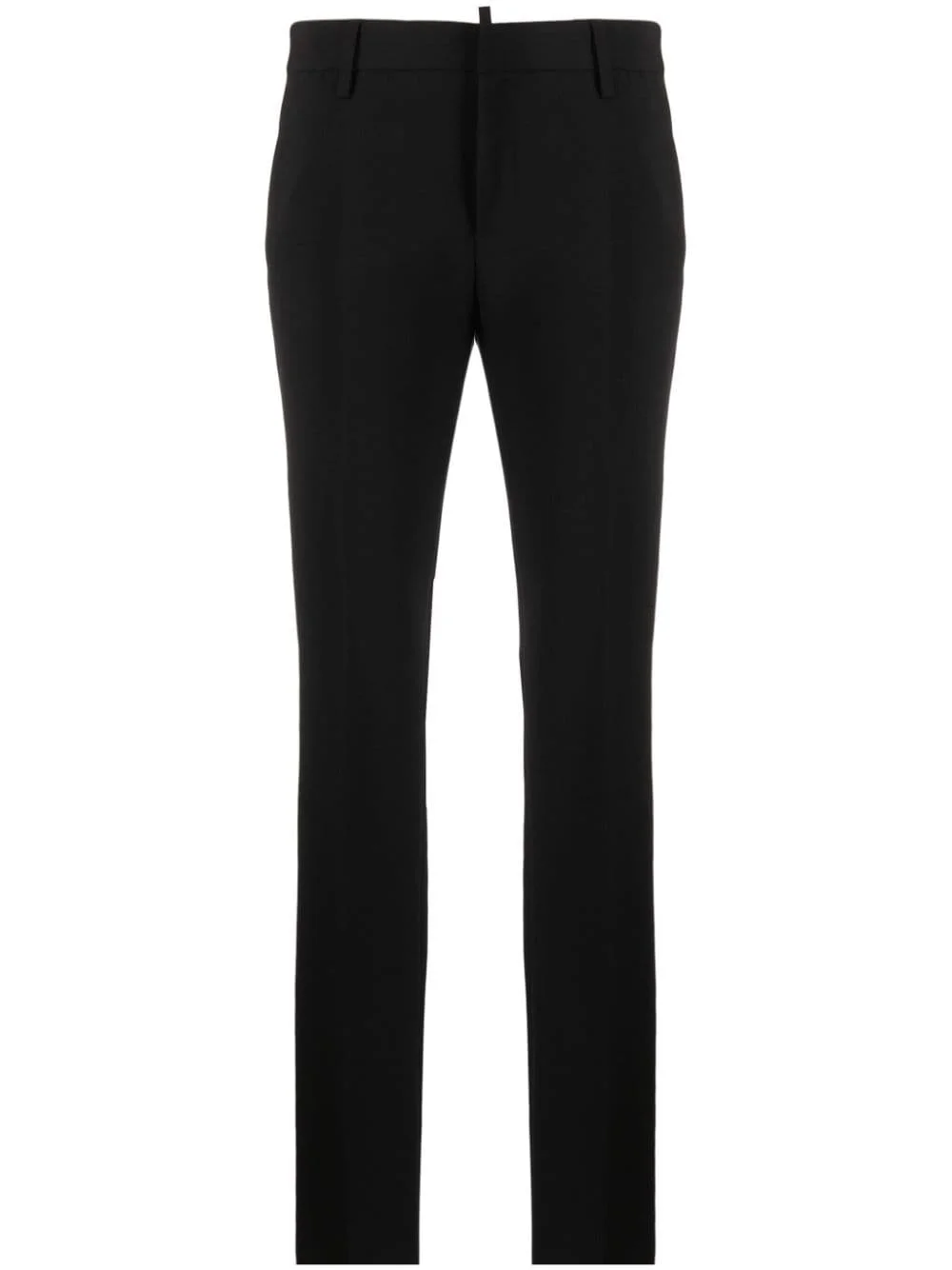 logo-plaque tailored slim-fit trousers Highlights - Black - Logo plaque to the rear - Pressed crease - Belt loops - Slim cut - Two rear welt pockets - Zip fly fastening Made in Italy Composition Outer: Polyester 100%, Polyurethane 100% Lining: Polyester 100% SIZE & FIT Model measurements Height 5 ft 10 in(1.77 m) Bust/Chest 32.28 in(82 cm) Hips 35.03 in(89 cm) Waist 25.19 in(64 cm) FittingInformation Designed for a slim fit, these trousers offer a close fit at the waist, allowing a comfortable close fit and some movement over the leg Made from a midweight stretch fabric, this piece offers elasticity and flexibility when worn This piece fits true to size – take your usual size Washing instructions Dry Clean Only