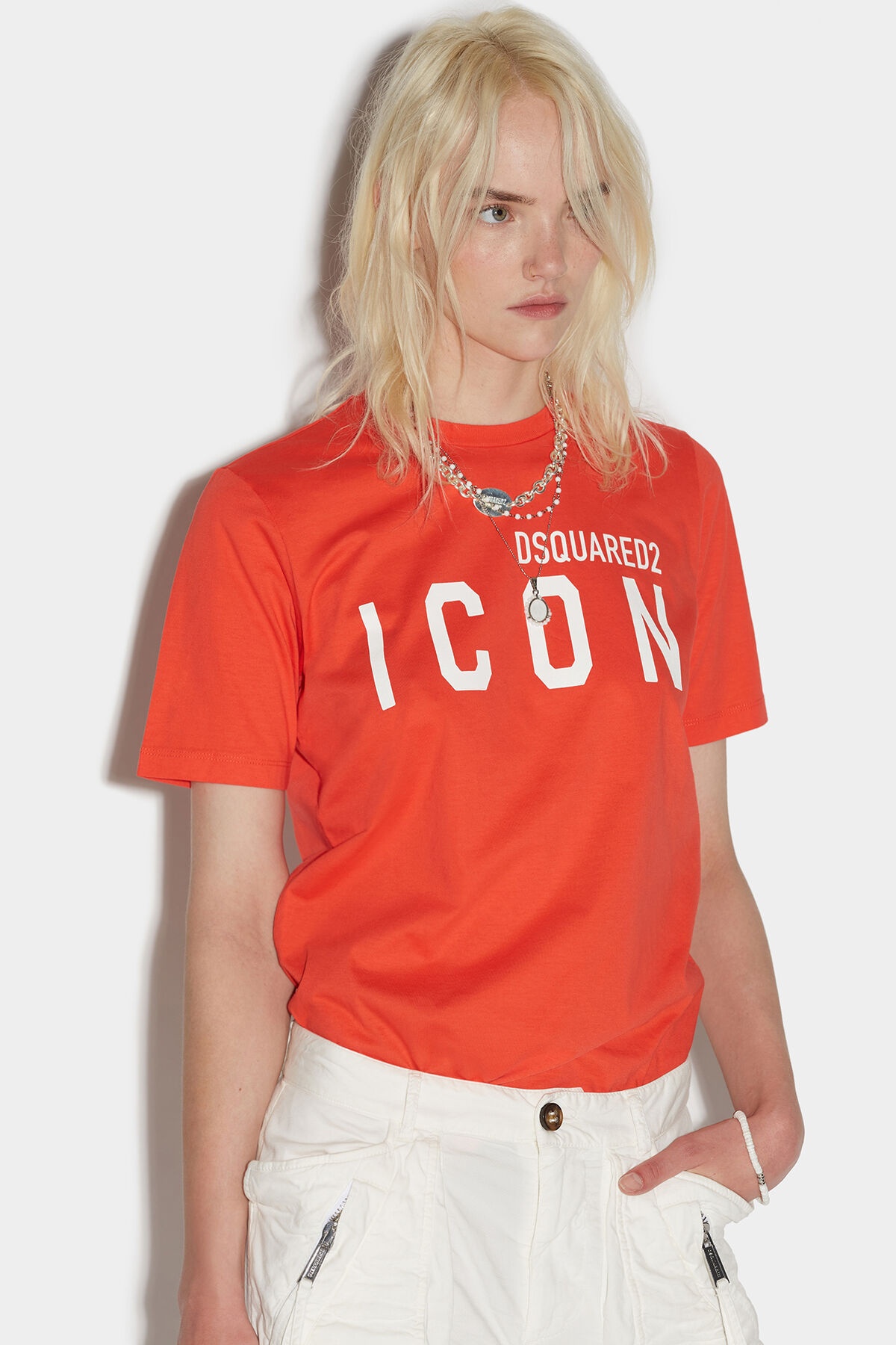 - PRODUCT ID: S80GC0001S23009311 - COTTON T-SHIRT - SLIM FIT - "DSQUARED2 ICON" FRONT PRINT - MADE IN PORTUGAL 100% COTTON UPGRADE YOUR BASICS WITH THE BE ICON RENNY T-SHIRT FROM DSQUARED2. THIS BLOCK-TRENDY TEE FEATURES A PROMINENT "DSQUARED2 ICON" LOGO ON THE FRONT, ADDING A TOUCH OF HIGH-FASHION TO YOUR WARDROBE. MADE FROM HIGH-QUALITY MATERIALS, THIS T-SHIRT IS SOFT TO THE TOUCH AND DESIGNED TO LAST. PLUS, WITH A VARIETY OF SHADES AVAILABLE, YOU CAN CHOOSE THE ONE THAT BEST FITS YOUR STYLE. PAIR IT WITH JEANS OR SHORTS FOR A CASUAL, STYLISH LOOK.