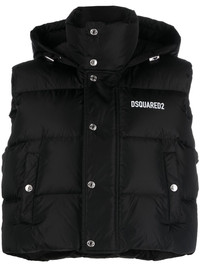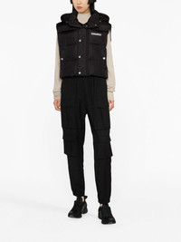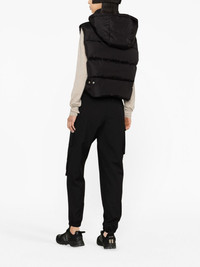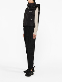 logo-print cropped gilet Highlights - Black - Feather down - Padded design - Logo print at the chest - Classic hood - Front press-stud fastening - Sleeveless - Two side button-fastening pockets - Cropped straight hem Imported Composition Outer: Polyamide 100% Lining: Feather Down 100%, Polyamide 100%, Cotton 100% SIZE & FIT Model measurements Height 5 ft 10 in(1.78 m) Bust/Chest 29.92 in(76 cm) Hips 34.64 in(88 cm) Waist 23.62 in(60 cm) FittingInformation Designed for a relaxed fit, this piece allows for comfort and movement when worn Made from a midweight non-stretch fabric This piece fits true to size – take your usual size