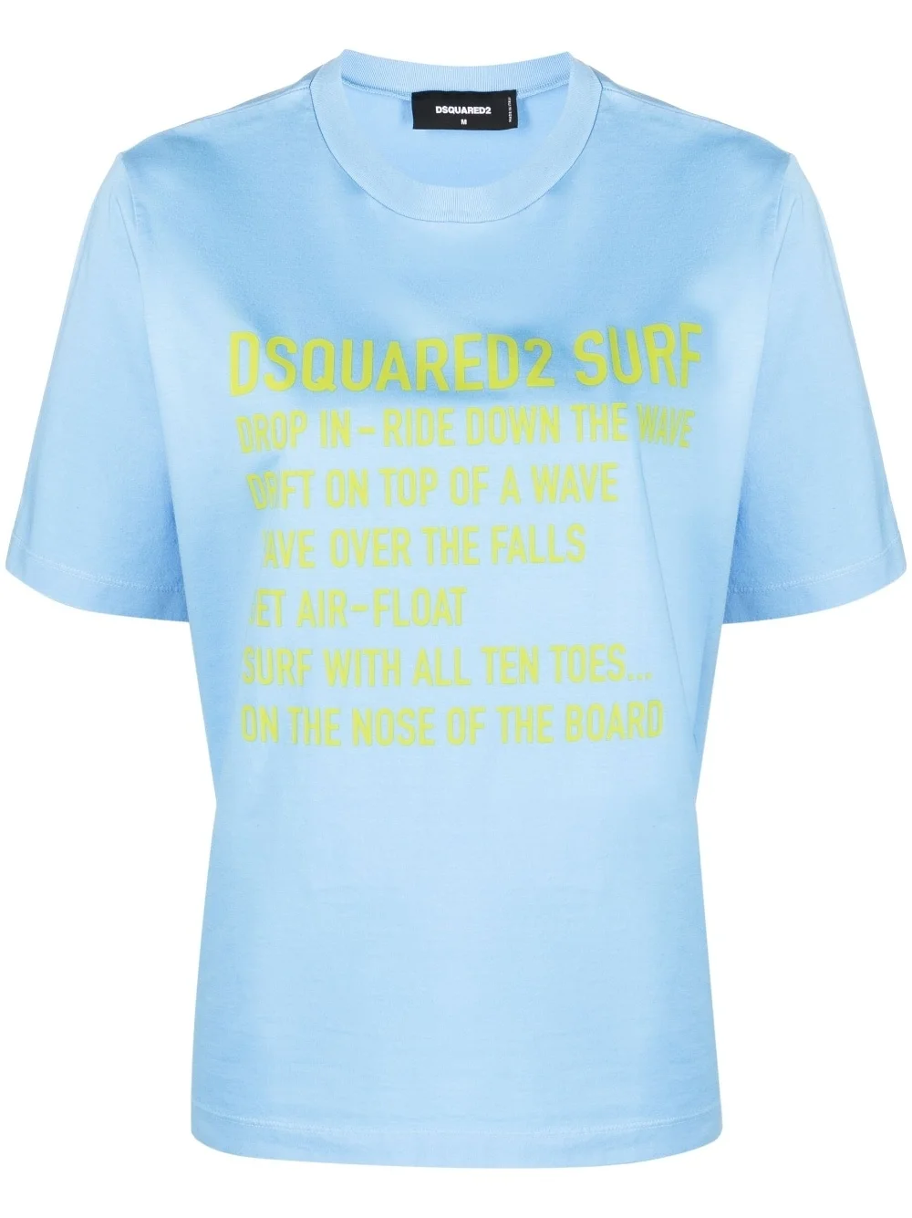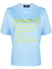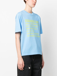 logo-print detail T-shirt baby blue/yellow cotton logo print to the front round neck short sleeves straight hem Made in Italy Composition Cotton 100% SIZE & FIT Model measurements Height 5 ft 11 in(1.8 m) Bust/Chest 31.49 in(80 cm) Hips 36.41 in(92.5 cm) Waist 25.59 in(65 cm) FittingInformation Designed for a boxy fit, intended for a loose fit throughout Made from a midweight stretch fabric, this piece offers elasticity and flexibility when worn This piece fits true to size – take your usual size Washing instructions Machine Wash