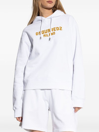 logo-print hoodie Highlights - White - Front pouch pocket - Slouchy drawstring hood - Long sleeves - Straight hem Made in Italy Composition Cotton 100%