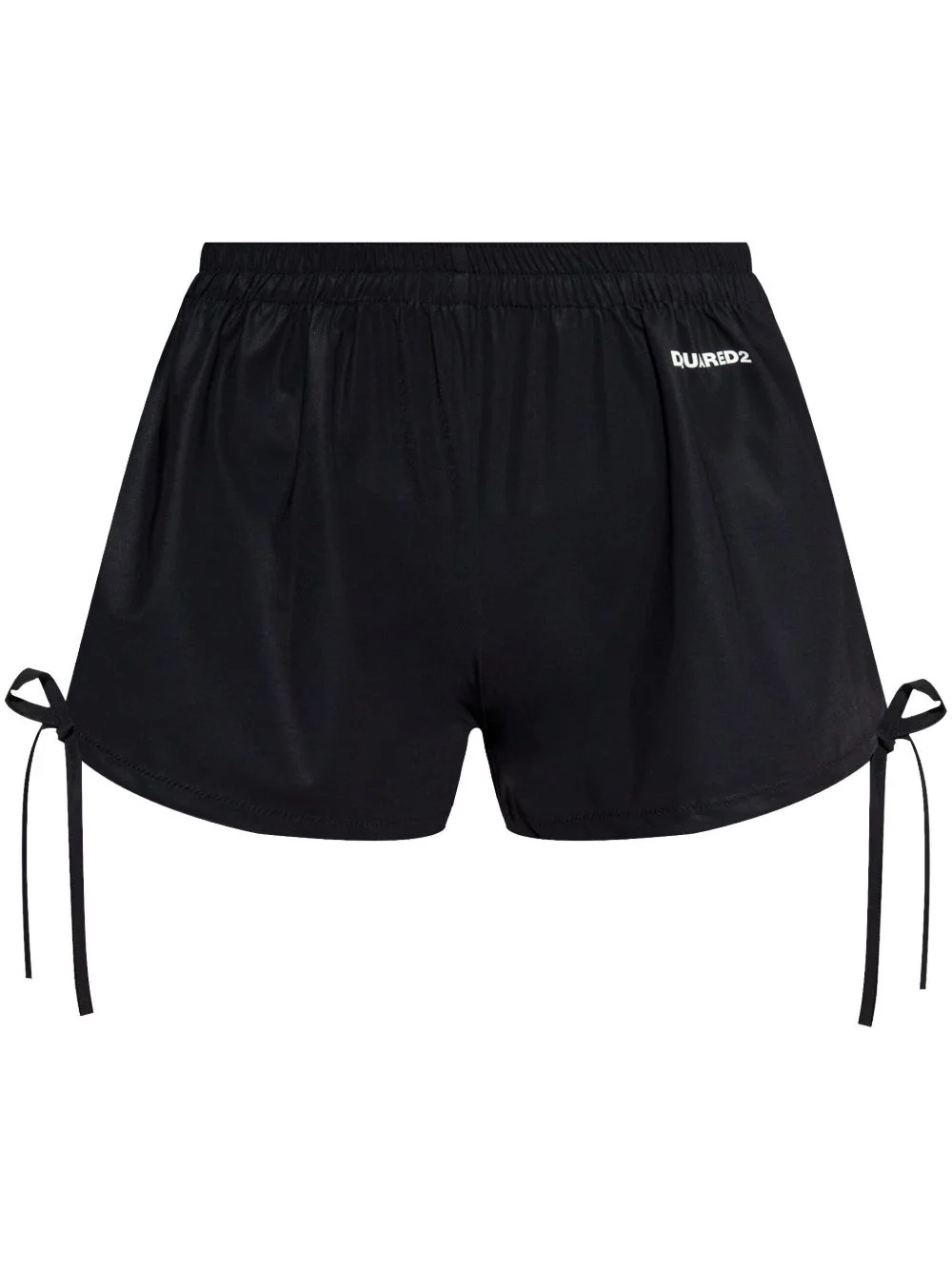logo-print shorts Highlights - Black - Elasticated waistband - Two side inset pockets - Tie-fastening straps Made in Italy Composition Polyamide 71%, Elastane 29%