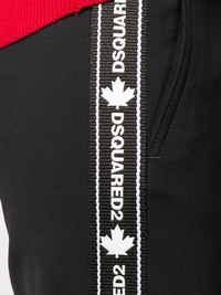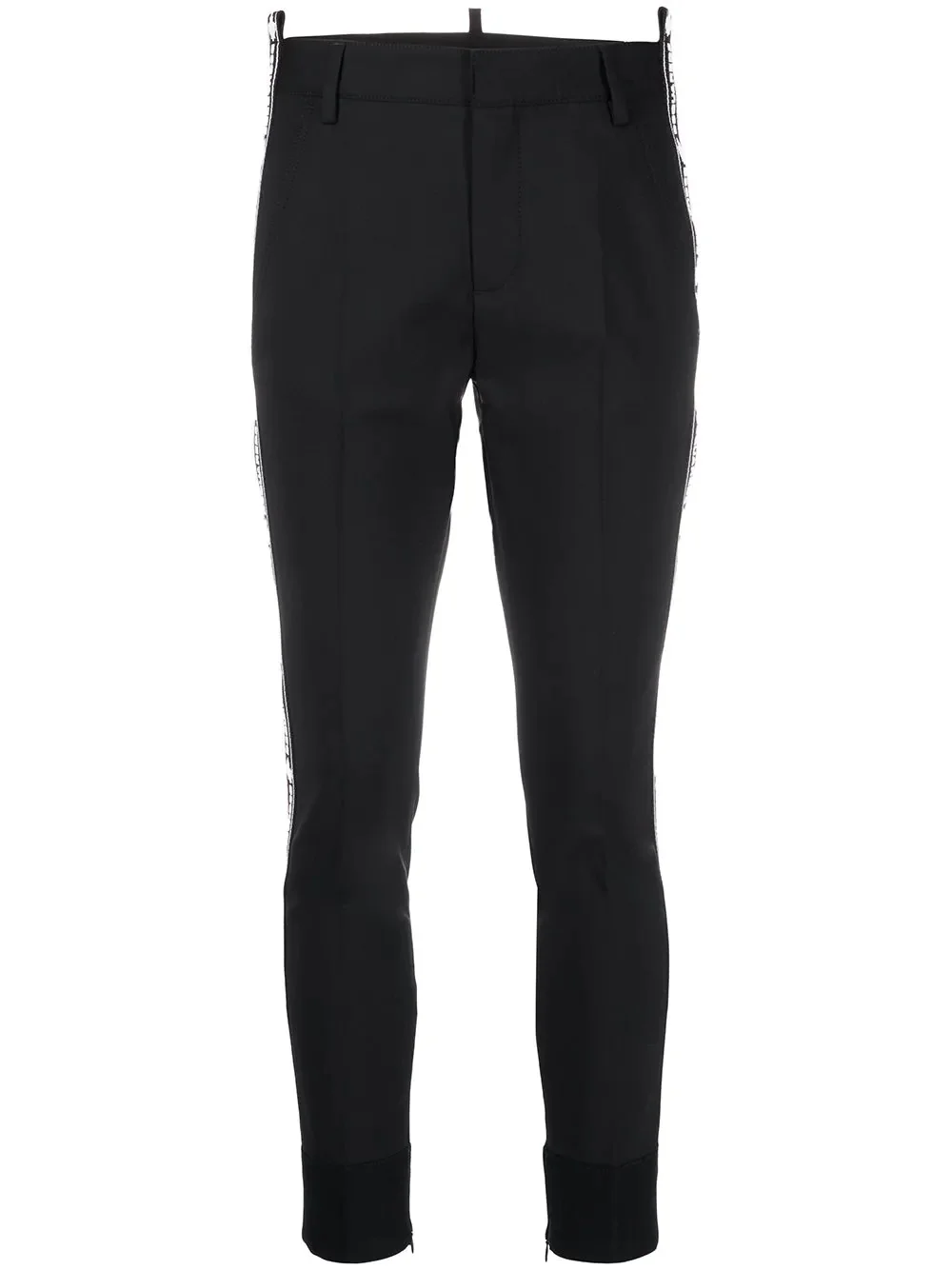 logo print slim-fit trousers The Caten twin brothers of DSQUARED2 are known for taking classic silhouettes and adding a unique twist. These wool trousers feature belt loops, a concealed front fastening, side pockets, rear welt pockets, a slim fit and turn up hems. Made in Italy Composition Lining: Polyester 100% Outer: Virgin Wool 95%, Spandex/Elastane 5% SIZE & FIT Model measurements Height 5 ft 9 in(1.76 m) Bust/Chest 31.49 in(80 cm) Hips 35.03 in(89 cm) Waist 23.62 in(60 cm) FittingInformation This piece fits true to size. We recommend you get your regular size Cut for a slim fit Made with a mid-weight stretch fabric Washing instructions Dry Clean Only