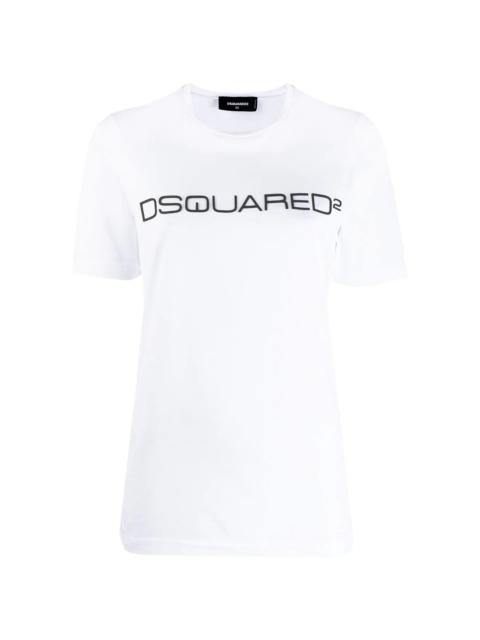 logo print T-shirt Known for continually pushing the boundaries of fashion, DSQUARED2 regularly put their signature spin on wardrobe classics, as shown with this black cotton T-shirt. Featuring a round neck, short sleeves, a front centre logo stamp and a two tone design. Made in Italy Composition Cotton 100% SIZE & FIT Model measurements Height 5 ft 11 in(1.8 m) Bust/Chest 31.49 in(80 cm) Hips 35.82 in(91 cm) Waist 24.8 in(63 cm) FittingInformation This piece fits true to size. We recommend you get your regular size Cut for a relaxed fit Washing instructions Hand Wash