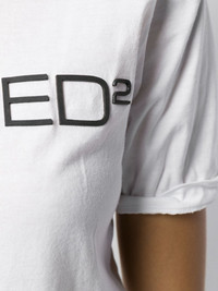 logo T-shirt Known for continually pushing the boundaries of fashion, DSQUARED2 regularly put their signature spin on wardrobe classics, as showcased by this white cotton logo T-shirt. Featuring a crew neck, short sleeves, a straight hem, a print to the rear and a logo to the chest. Made in Italy Composition Cotton 100% SIZE & FIT Model measurements Height 5 ft 10 in(1.78 m) Bust/Chest 33.07 in(84 cm) Hips 36.61 in(93 cm) Waist 24.8 in(63 cm) FittingInformation This piece fits true to size. We recommend you get your regular size Cut for a relaxed fit Washing instructions Do Not Wash/Do Not Dry Clean