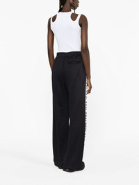 logo-tape wide-leg track pants Dsquared2 showcases its penchant for branded sporty designs with these track pants. Detailed with the brand's signature Icon logo on the side, this pair is defined by its laid-back wide leg. Highlights - Black - Logo-tape detailing - Elasticated drawstring waistband - Wide leg - Rear welt pocket Made in Italy Composition Outer: Polyamide 55%, Cotton 45% Lining: Cotton 100% SIZE & FIT Model measurements Height 5 ft 10 in(1.79 m) Bust/Chest 31.1 in(79 cm) Hips 35.03 in(89 cm) Waist 24.01 in(61 cm) FittingInformation Designed with a wide-leg cut, these trousers allow for a close fit at the waist and offer a loose and roomy fit over the leg Adjust this piece’s waistband to your preference using the drawstring Made from a midweight non-stretch fabric, this piece offers minimal elasticity when worn This piece fits true to size – take your usual size Washing instructions Machine Wash