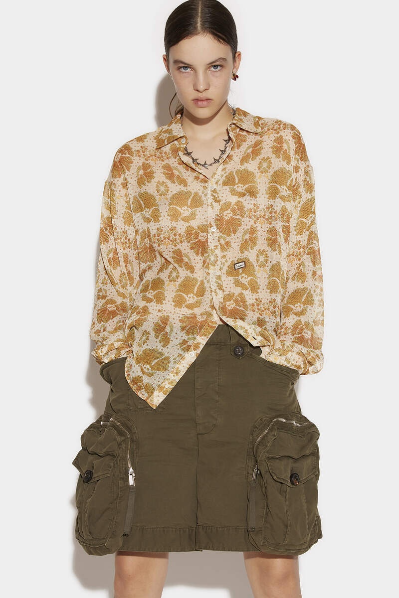 - PRODUCT ID: S72DL0697S54557002S - SHIRT MADE FROM SOFT CREPON - PIXELATED FLORAL PATTERN - LONG-SLEEVED FITTED STYLE - BUTTON CLOSURE - SPREAD COLLAR - BUTTONED CUFFS - GATHERED BACK YOKE - SMALL DSQUARED2 PATCH - MADE IN ITALY 100% POLYESTER The model is 5'10' tall and wears a size 2 For sartorial looks this spring, opt for this long sleeve fitted shirt with a gathered back yoke. Features a soft crepon fabric with a quirky floral pattern and classic spread collar. Wear with slim fit trousers for masculine tailoring or cargo shorts for a laid-back vibe.