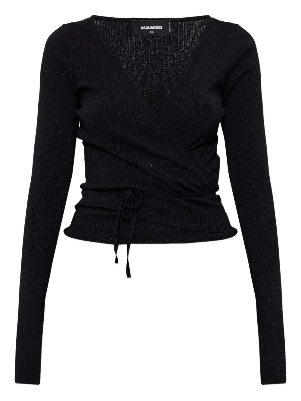 lurex wrapped top Highlights - Black - V-neck - Tie detail - Long sleeves - Ribbed knit Made in Italy Composition Fabric 100%