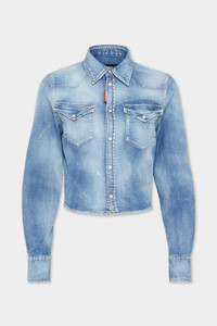 - PRODUCT ID : S75DL0917S30341470 - MADE FROM STRETCH COTTON DENIM - CROPPED FIT - POINTED YOKES - SNAP BUTTON CLOSURE - SNAP BUTTON FLAP POCKETS - SNAP BUTTON CUFFS - RED DSQUARED2 LABEL PRIMARY FABRIC: 98% COTTON, 2% ELASTANE-SPANDEX